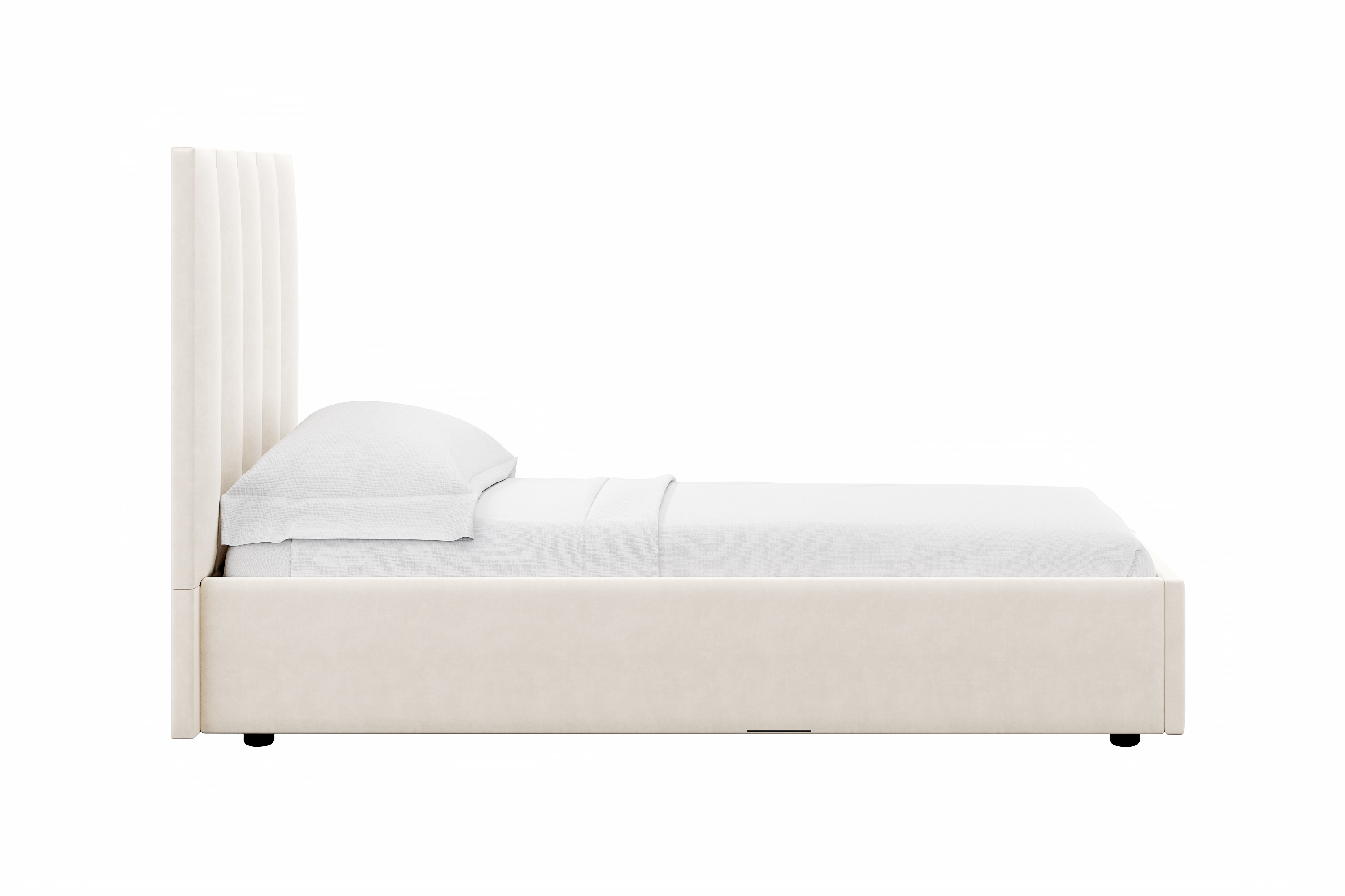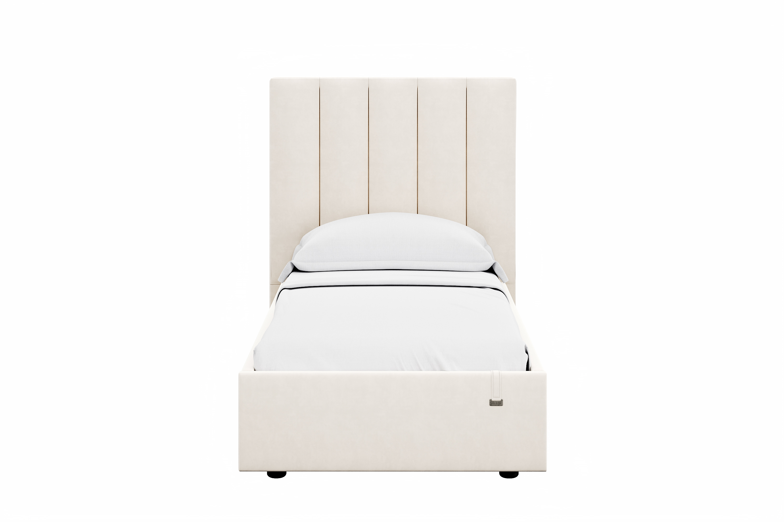 Кровати выполнены в нейтральных и ярких тканях велюр, что позволяет подобрать подходящий вариант почти под любой интерьер детской мальчиков и девочек. Дизайн модели отличается высоким изголовьем с вертикальными строчками и углублениями.