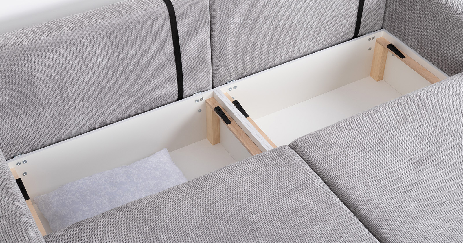 «Компоновка 7» состоит из: оттоманки арт. ТО, дивана арт. ТД, двух узких подлокотников арт. ТБ, двух приспинных подушек и двух декоративных подушек.