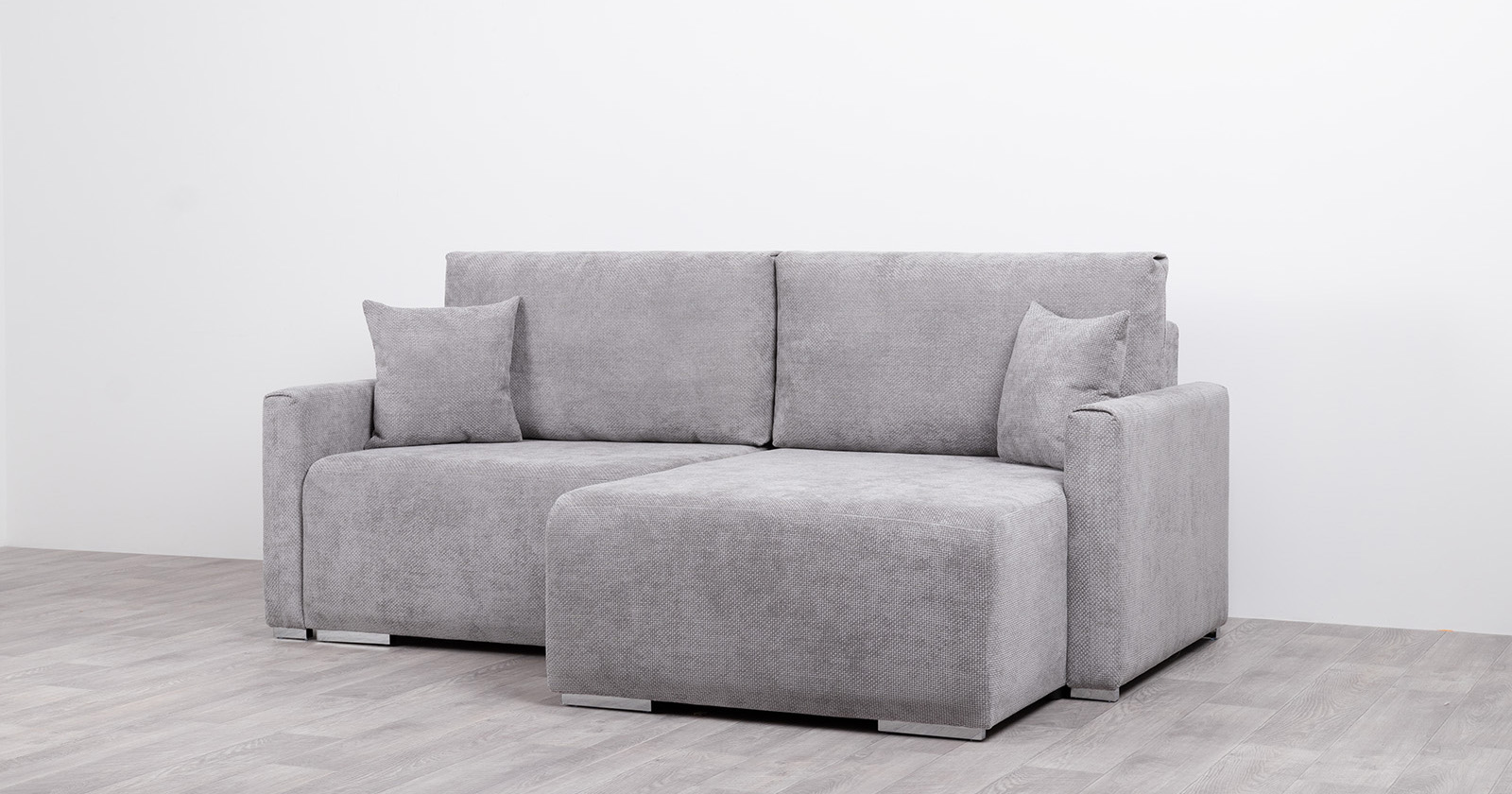 Диван-кровать угловой Оксфорд 712 композиция 1, шенилл MUZA 07 светло-серый, модульная система, сборка на любую сторону