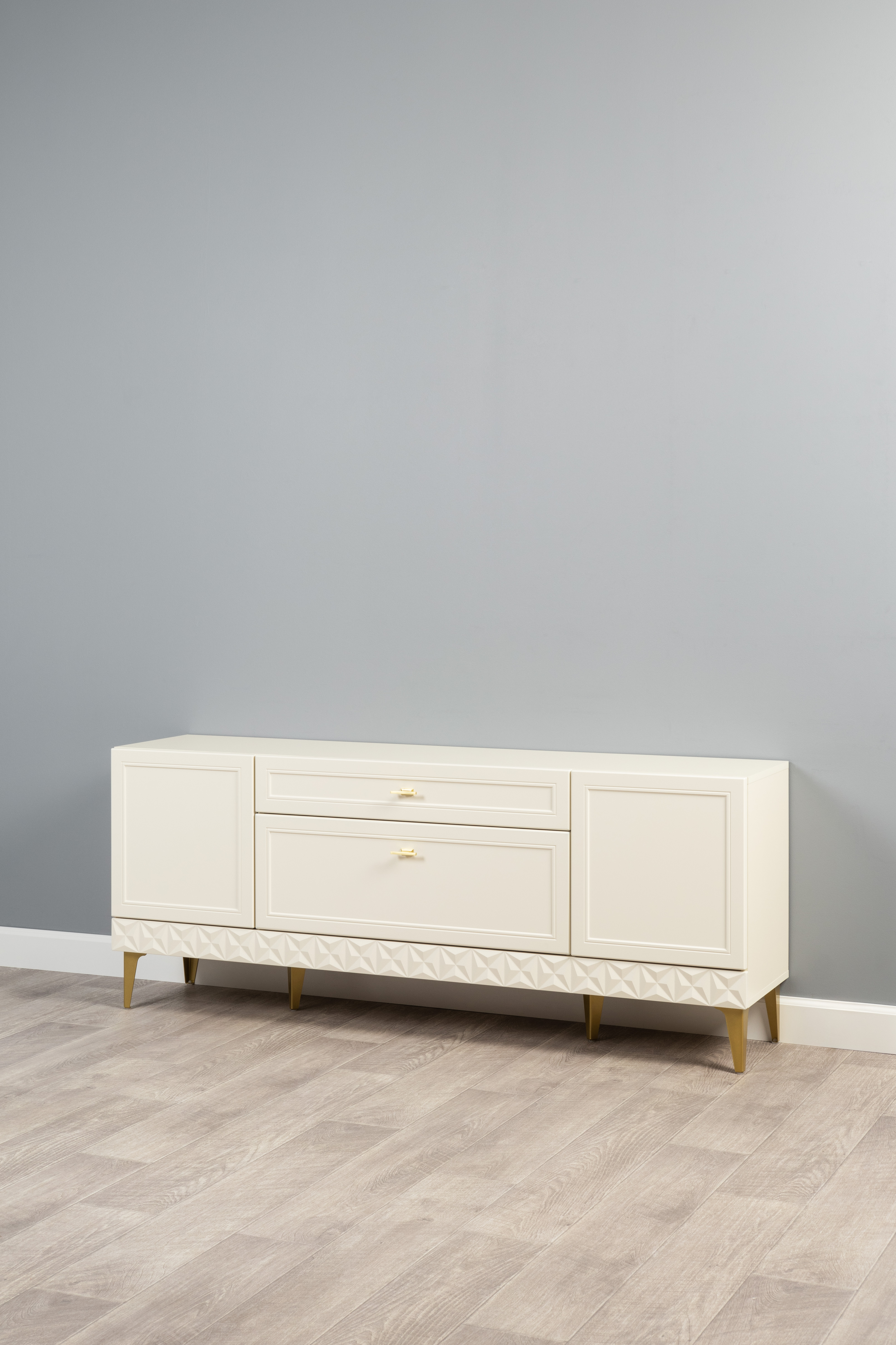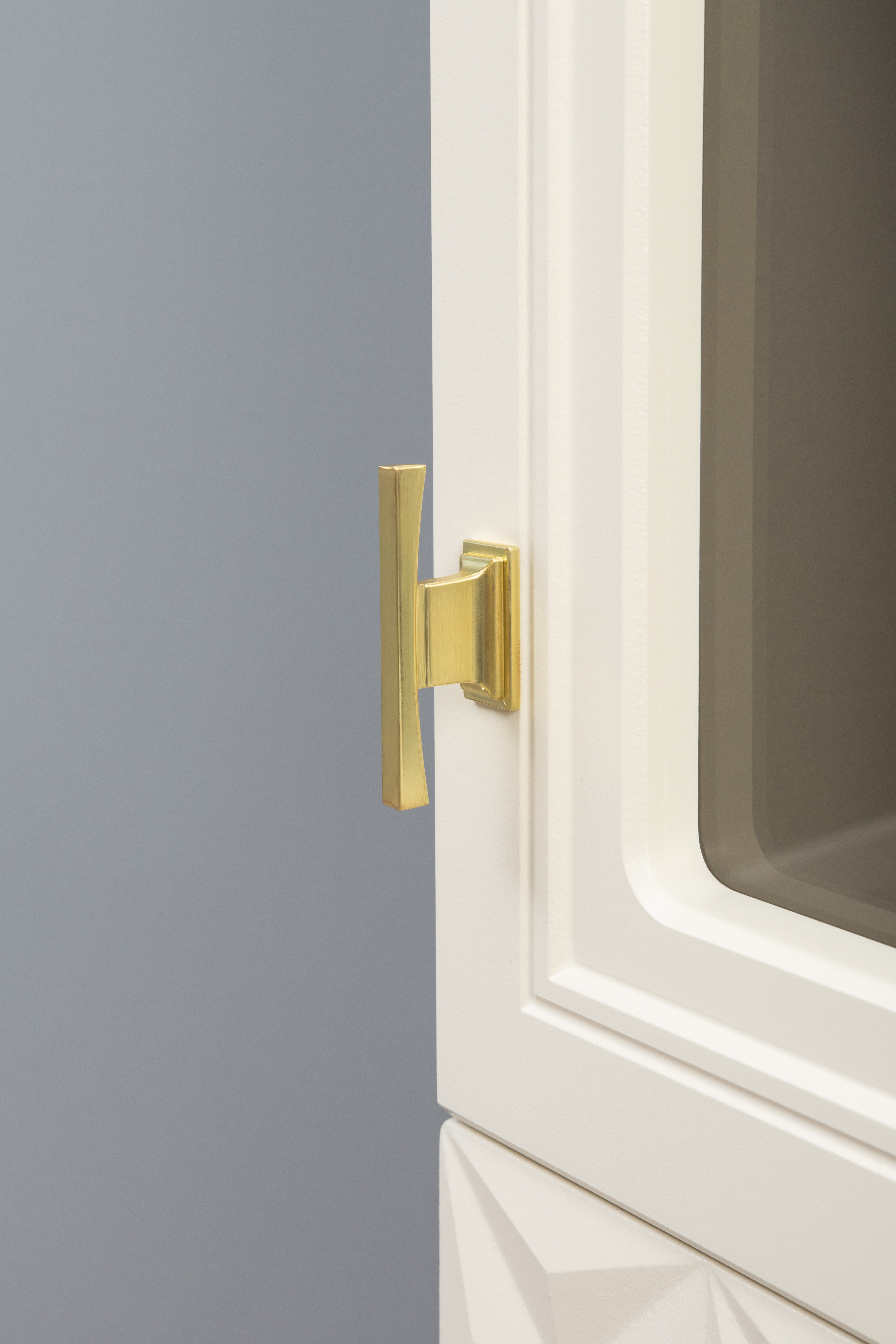 Изящные линии, глубокая фрезеровка фасадов из МДФ и благородные оттенки. Утончённая «Слоновая кость» и изысканная «Олива Шагрень» с глубоким зелёным тоном — создают атмосферу уюта, тепла и благородства. Металлические ручки и опоры золотого цвета придают мебели утончённый блеск, а петли и направляющие с доводчиками обеспечивают плавное и бесшумное закрытие фасадов.