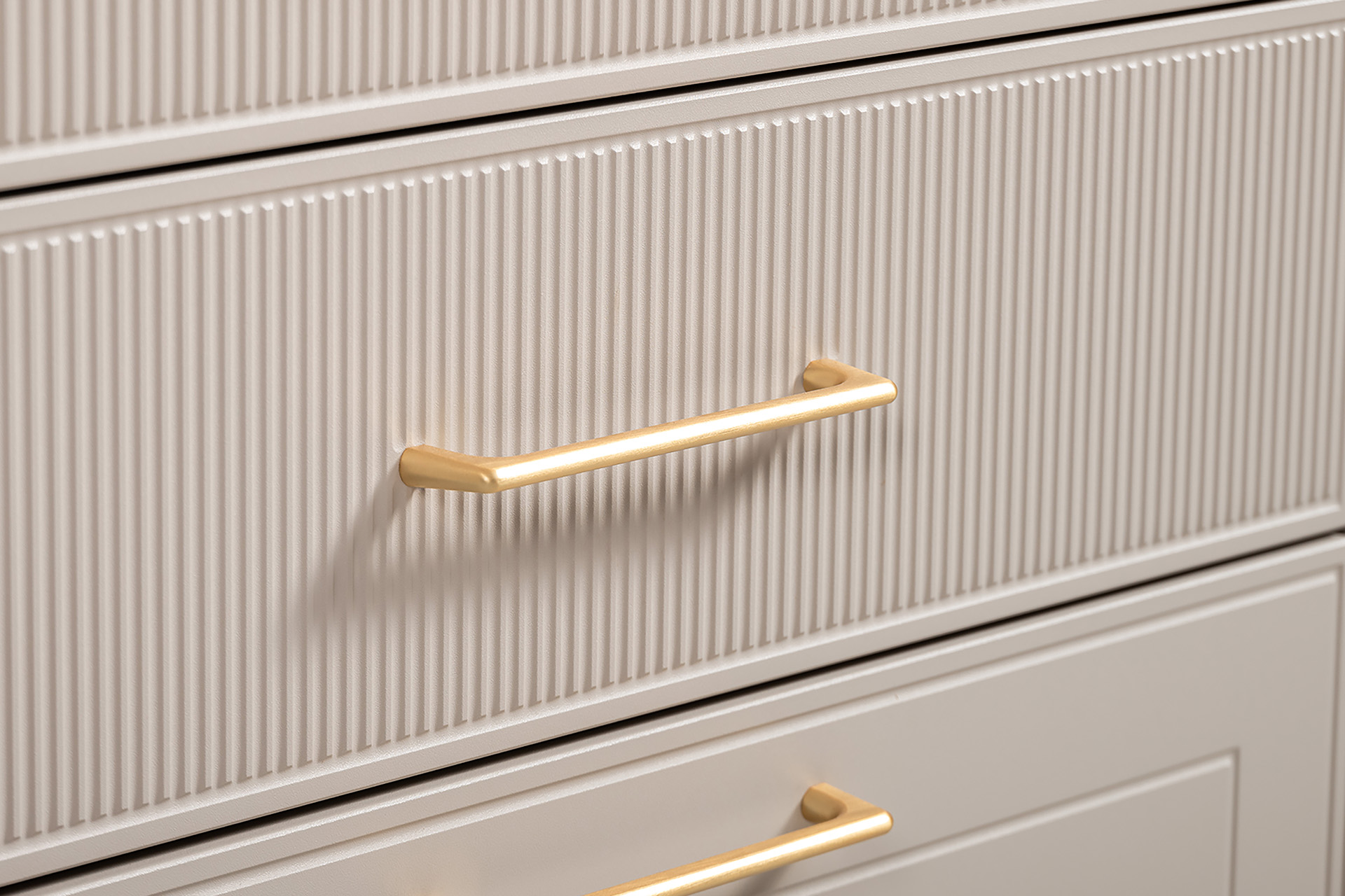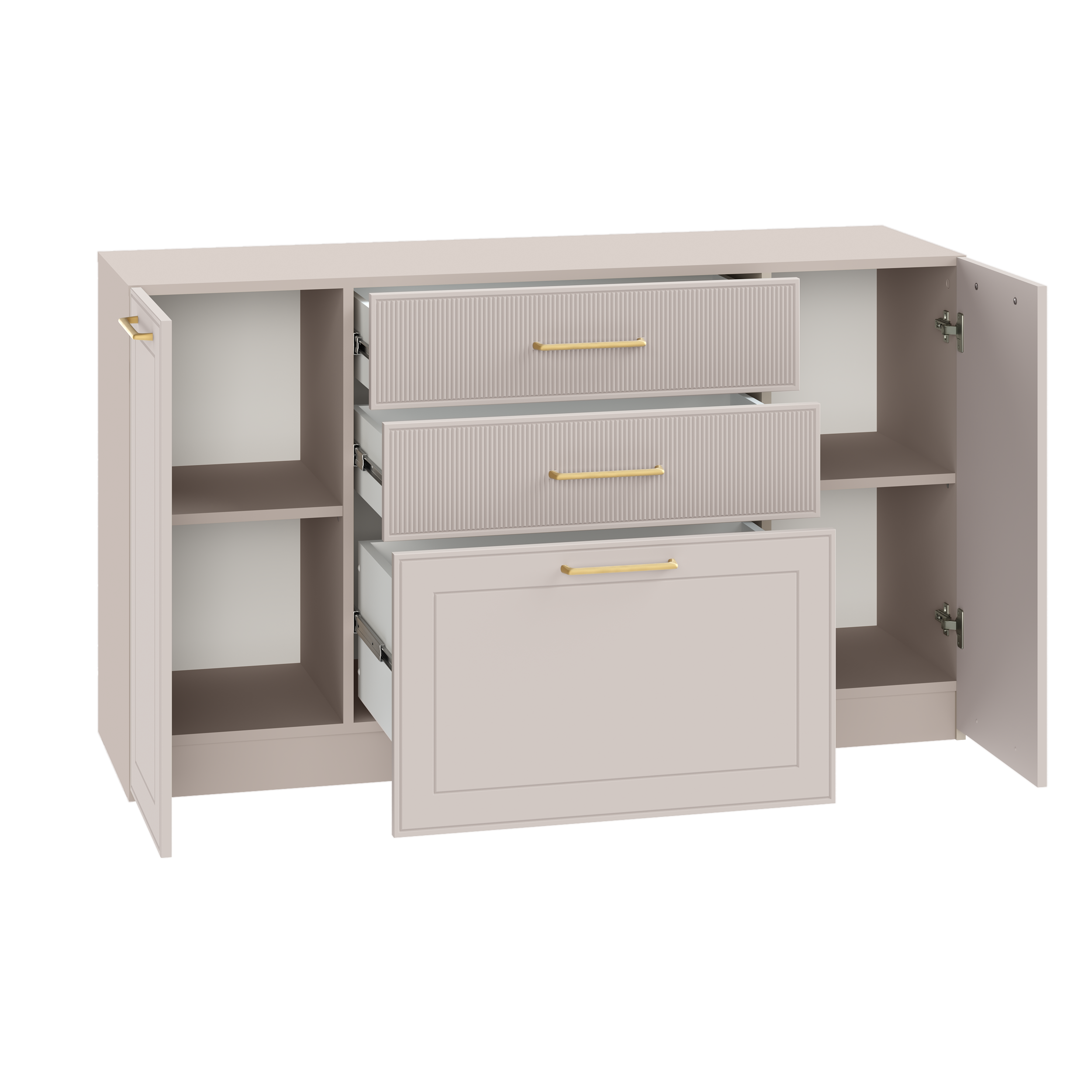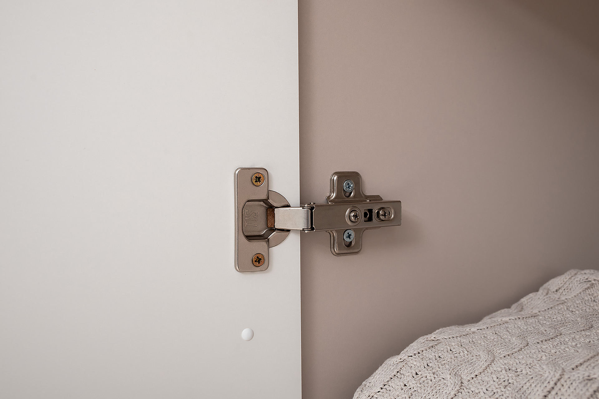 Петли с доводчиками, полное выдвижение ящиков, выдвижная штанга в шкафу для одежды и съемные полки делают использование максимально комфортным.
