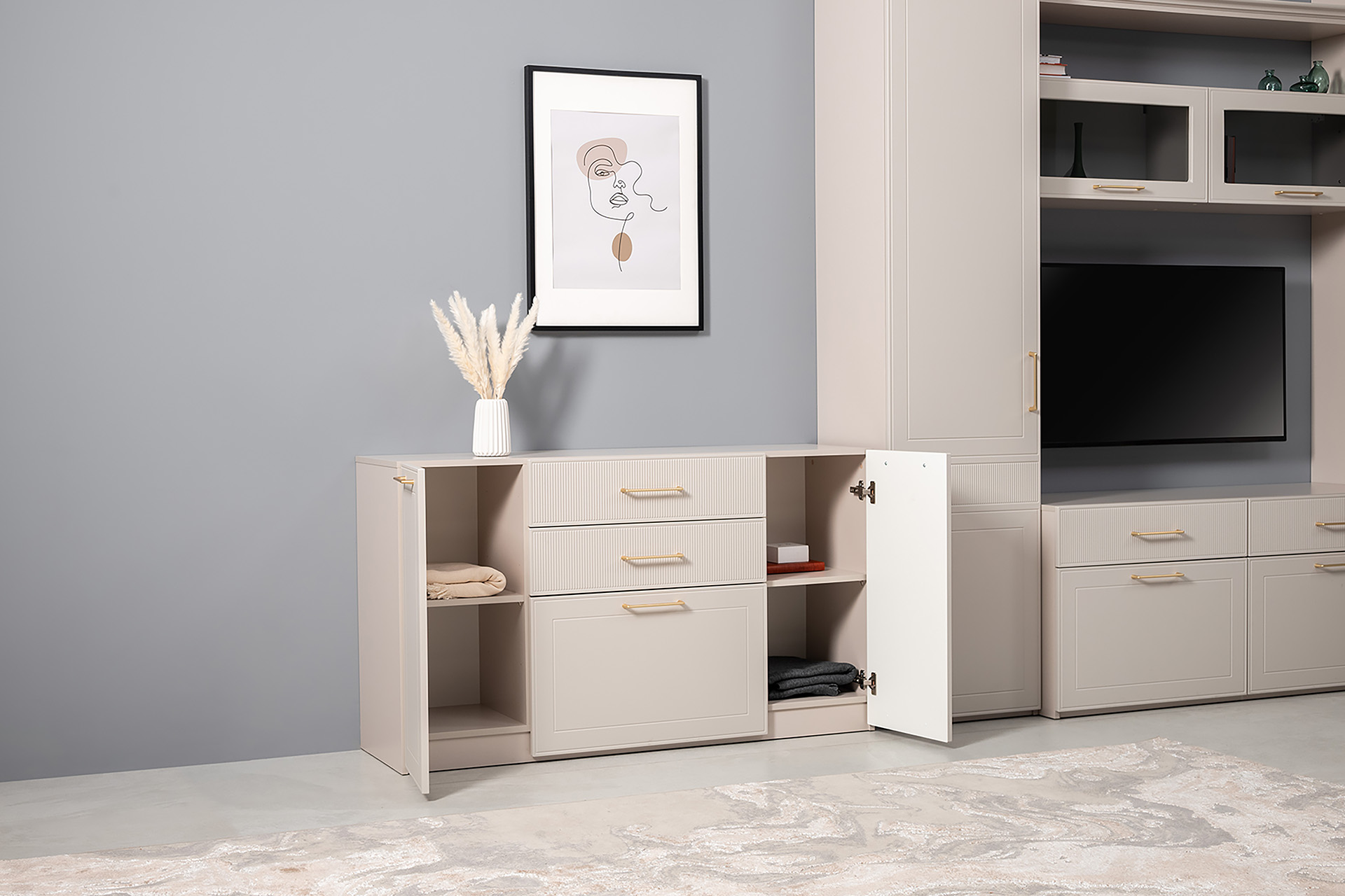 Комод Ричфорд 16.235 кашемир 5981 BS, моно керамика D166-2 ПВХ, белый PE шагрень