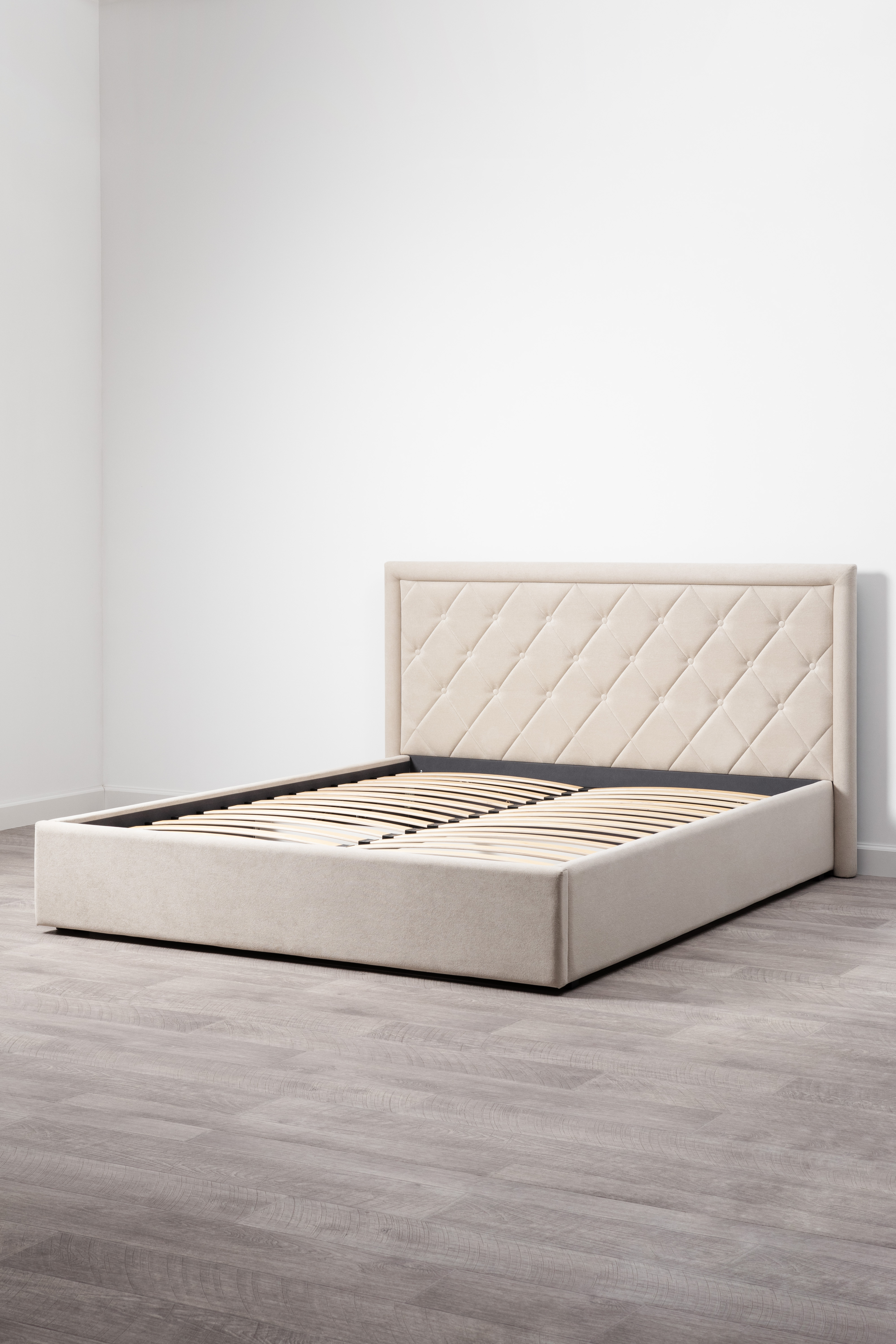 Основание кровати укомплектовано матрасодержателями. Жесткое кроватное дно из ЛДСП 16 мм на опорах 25 мм.