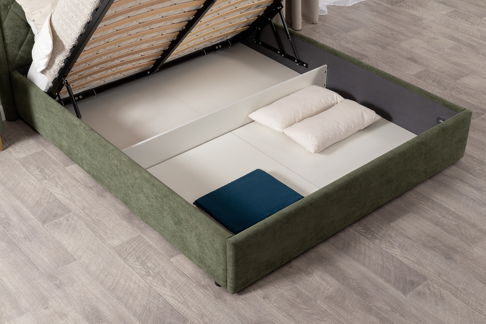Кровать Марион 160 велюр OCEAN 012 темно-зеленый с ортопедическим основанием и подъемным механизмом (спальное место 160 х 200)