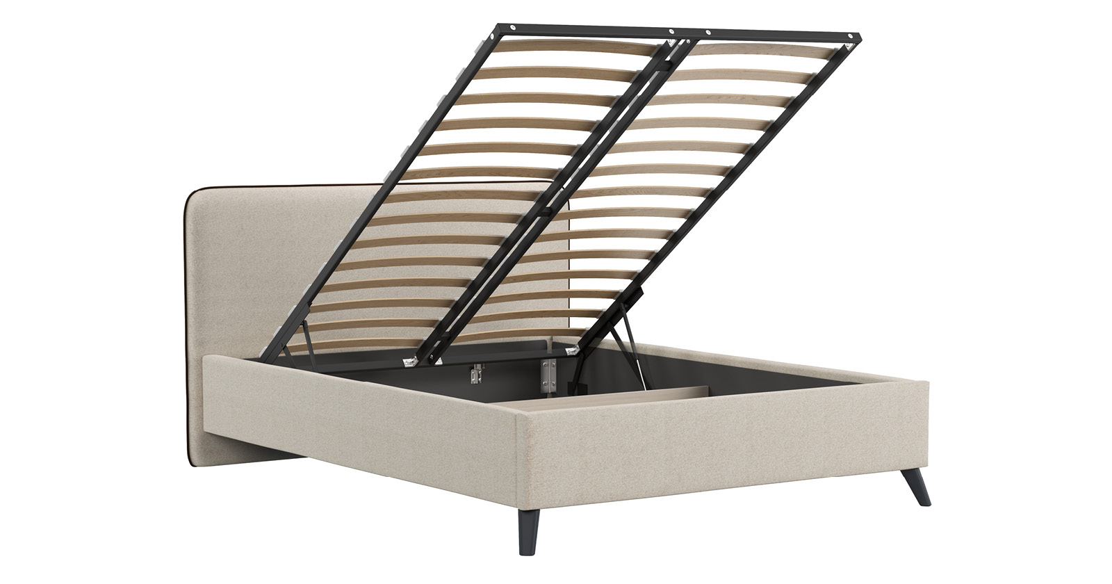 Cкругленный торец изголовья оформлен контрастным кантом.