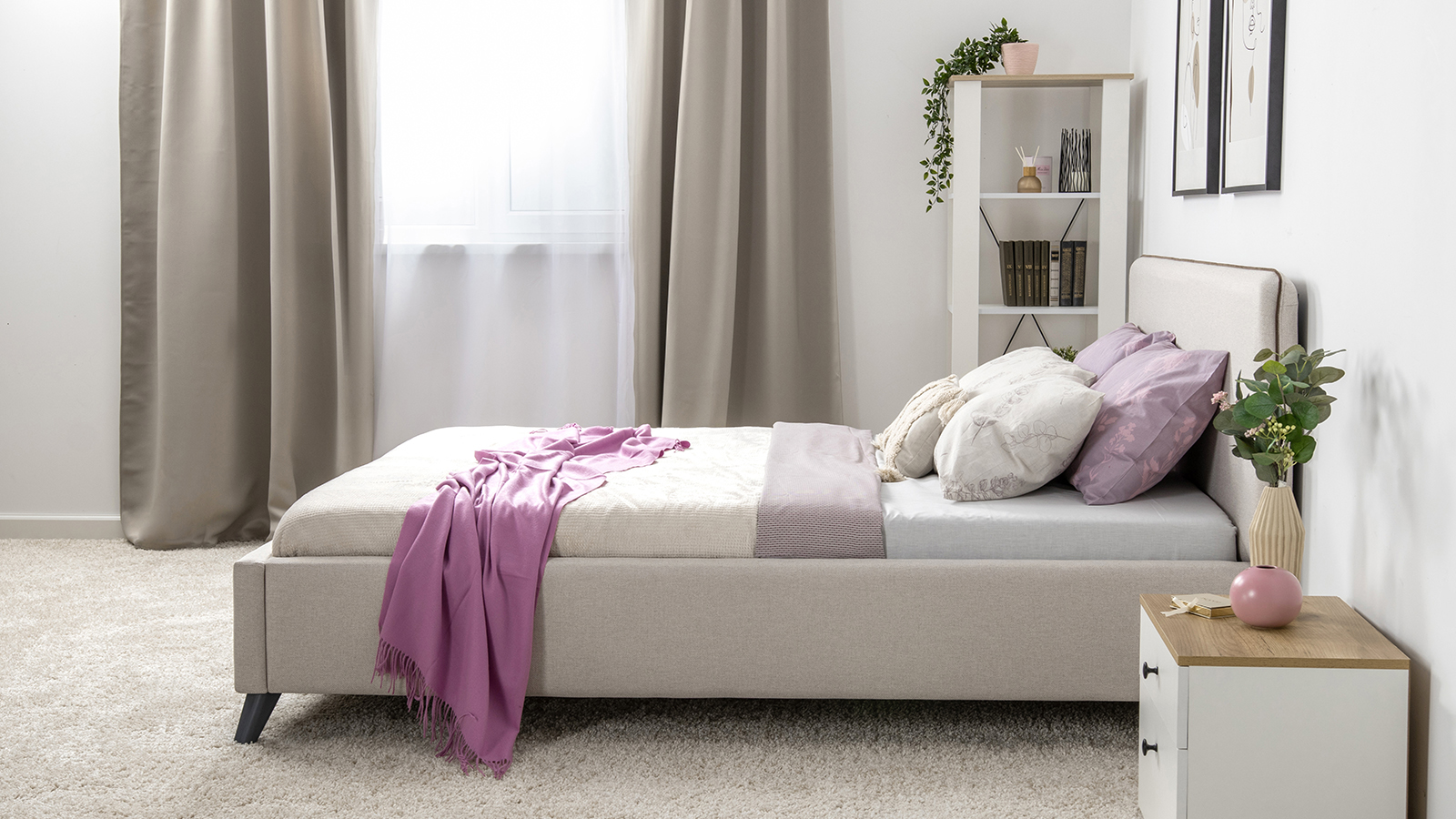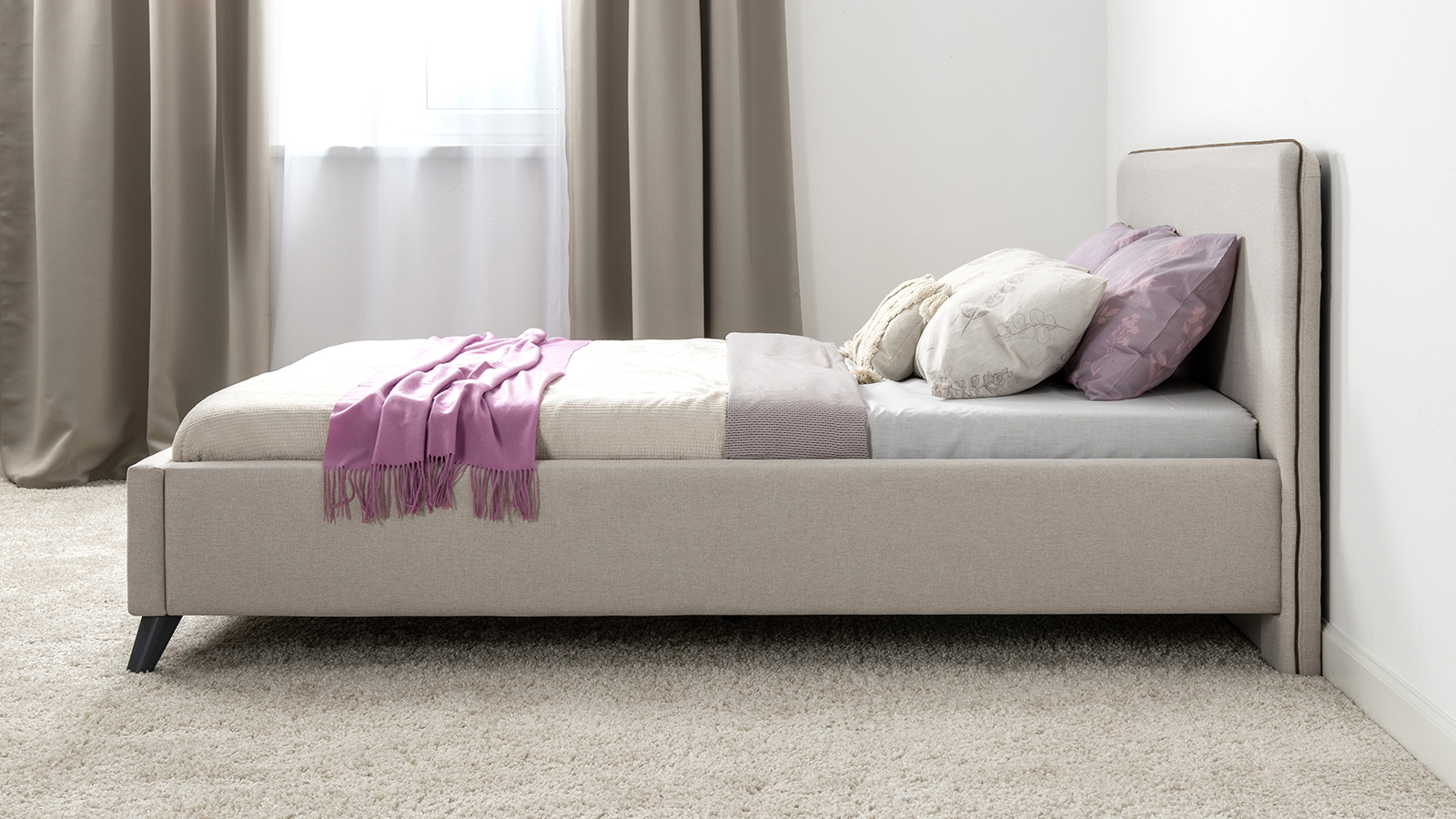 Лаконичный дизайн, гладкая и приятная на ощупь рогожка, широкий выбор пастельных оттенков, высокие опоры — модная кровать МИА порадует сторонников скандинавского стиля.