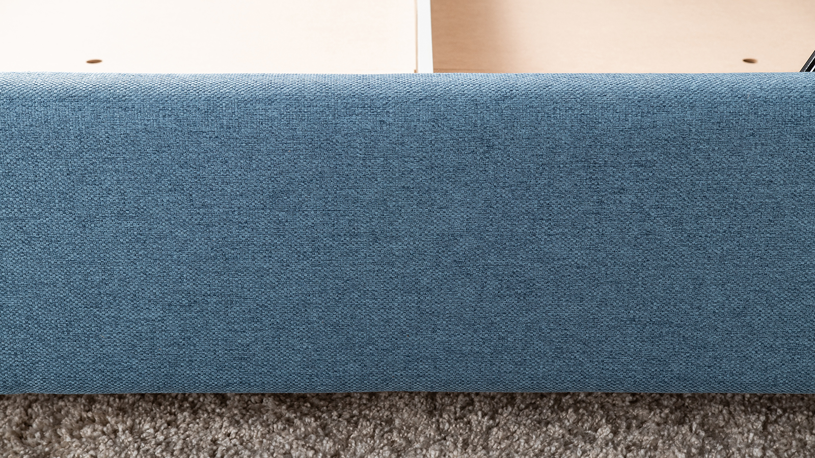 Основание кровати укомплектовано матрасодержателями. Жесткое кроватное дно из МДФ 6 мм. Задняя стенка изголовья выполнена в тех. ткани (спанбонд).