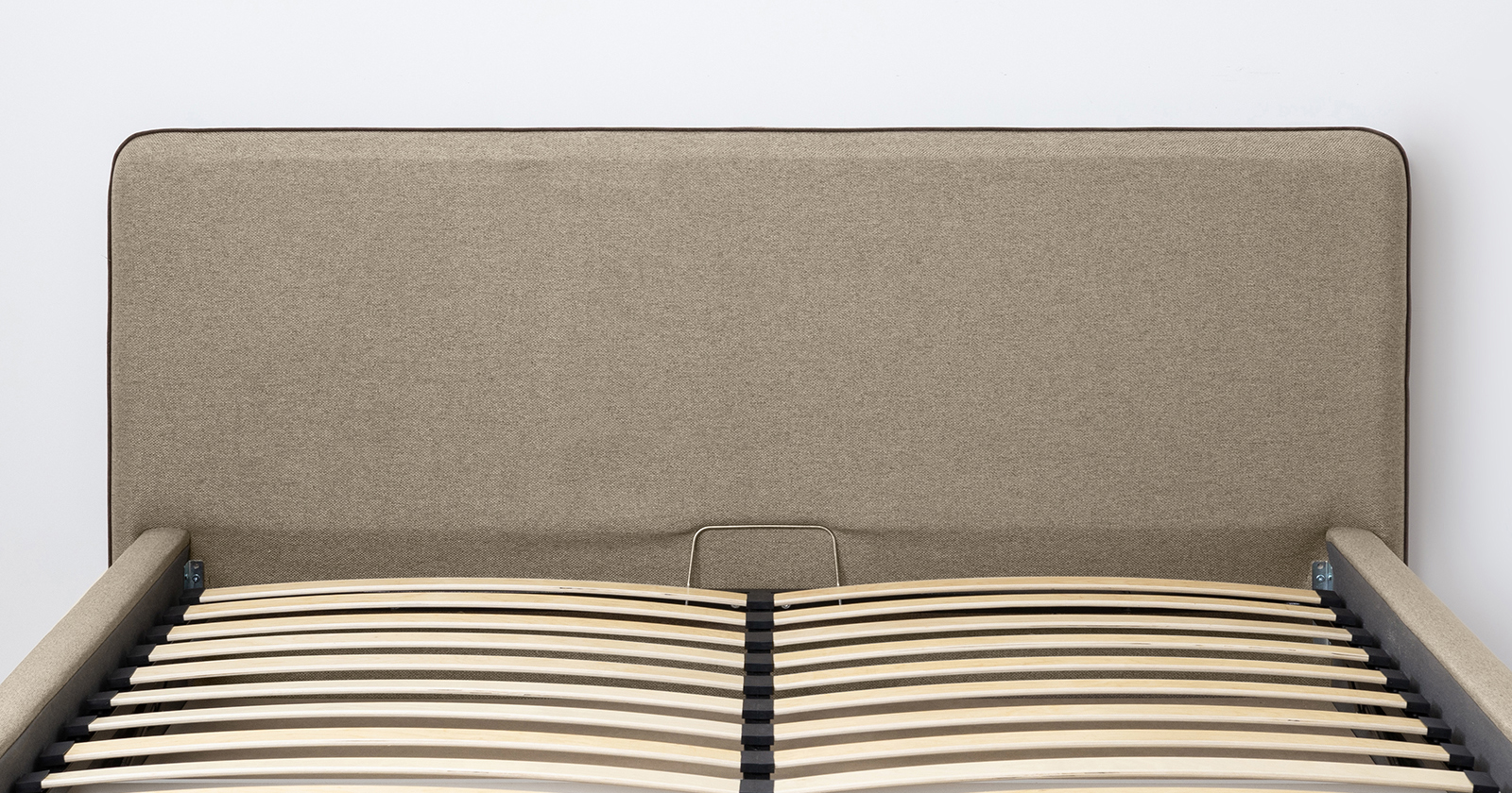 Кровать Миа 160 рогожка бежево-коричневый, кант желтовато-коричневый с ортопедическим основанием и подъемным механизмом