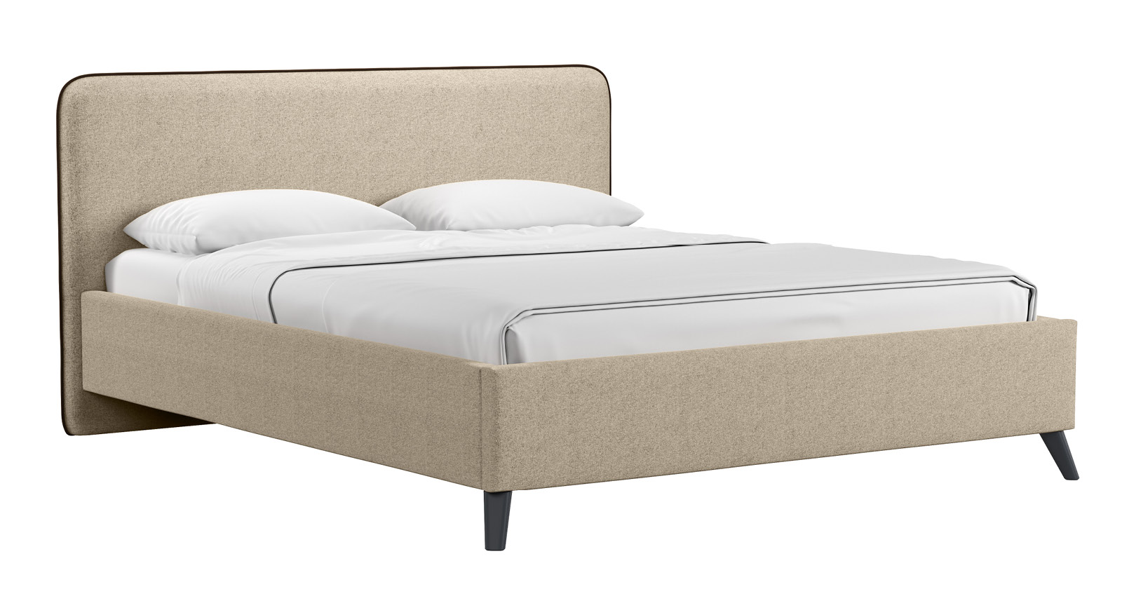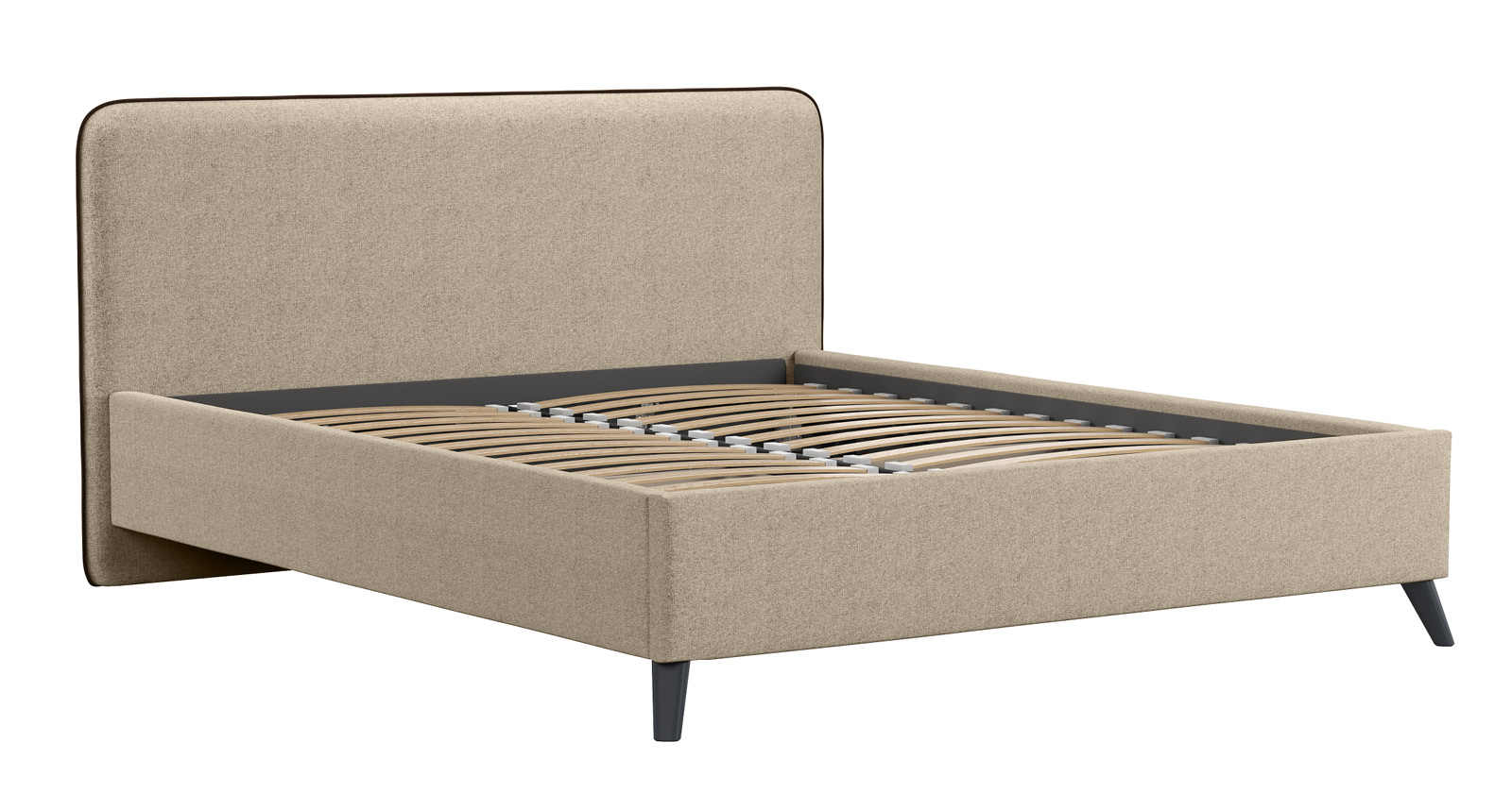 Кровать Миа 160 рогожка светло-бежевый, кант желтовато-коричневый с ортопедическим основанием и подъемным механизмом