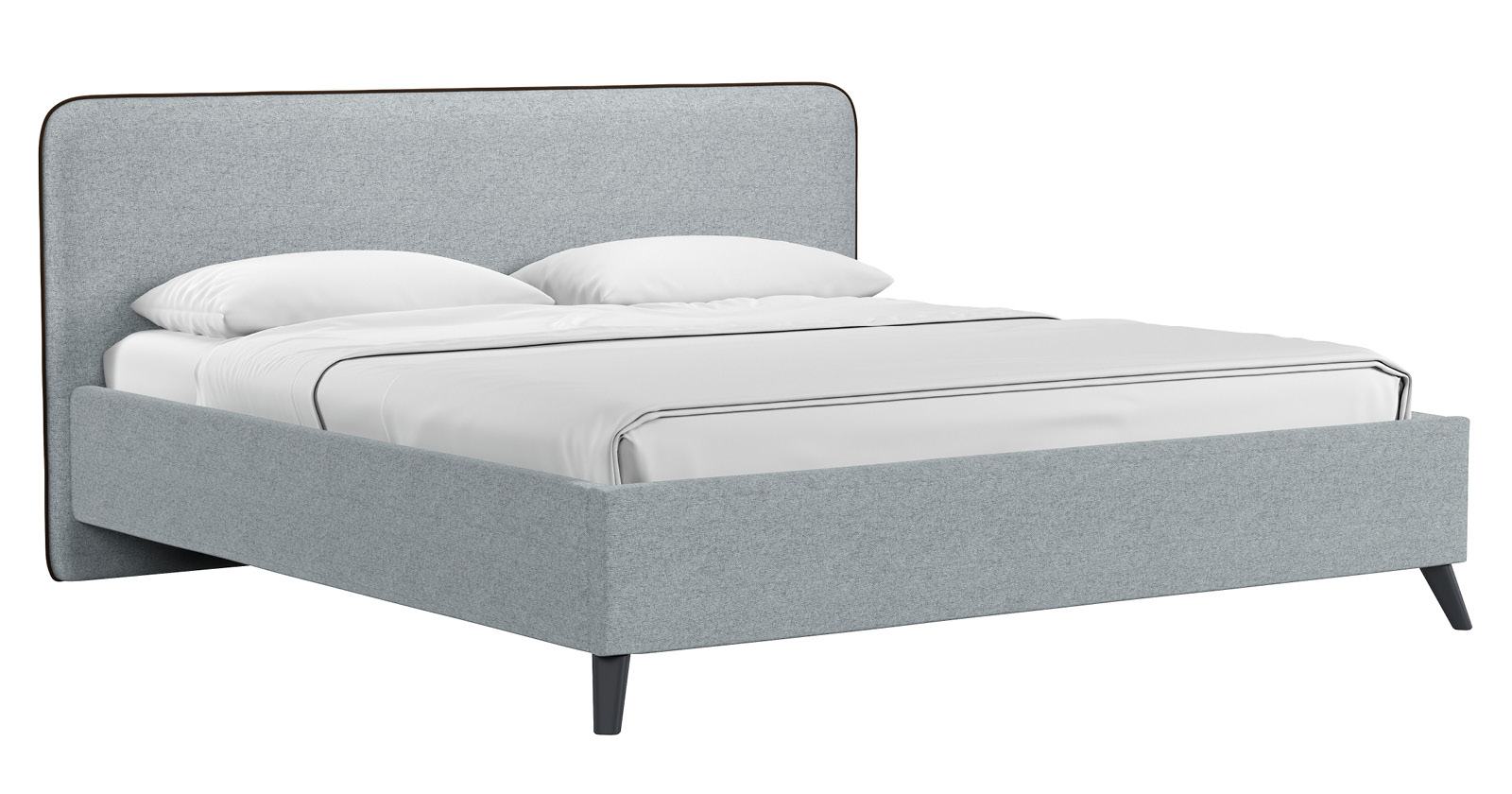 Кровать Миа 160 рогожка серый, кант желтовато-коричневый с ортопедическим основанием и подъемным механизмом